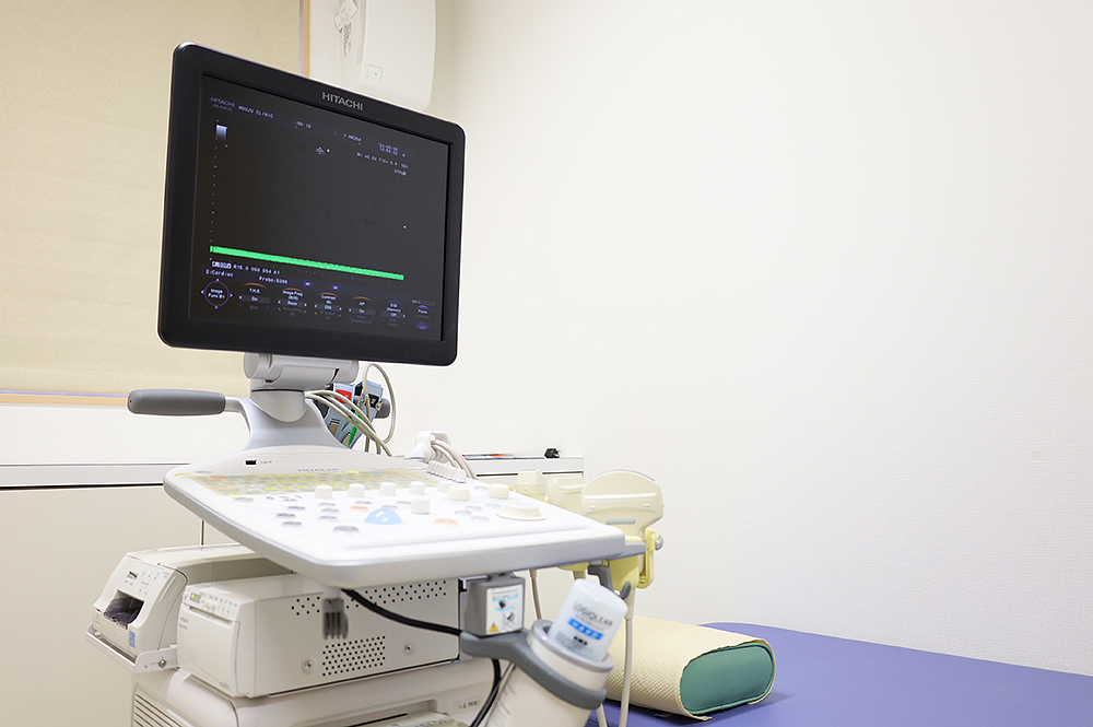 超音波(エコー)を用いて、心臓や、腹部、血管(頚部・下肢動脈・静脈)など体の中の臓器を観察します。放射線を使用しないため、被曝もなく安全な検査です。